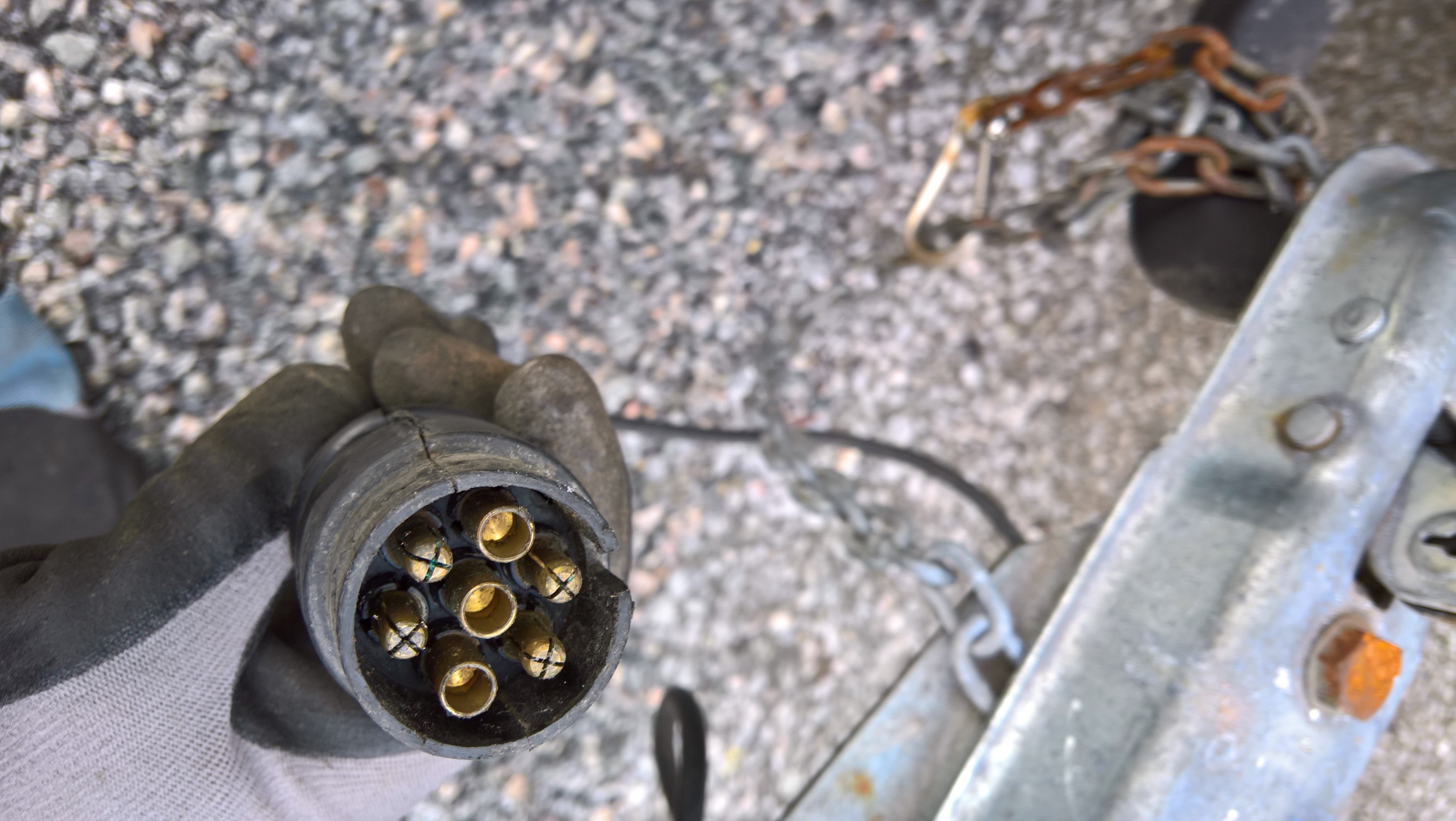 The Tesla Model X comes with a new 13-pin female connector and most older trailers have a old 7 pin male connector.