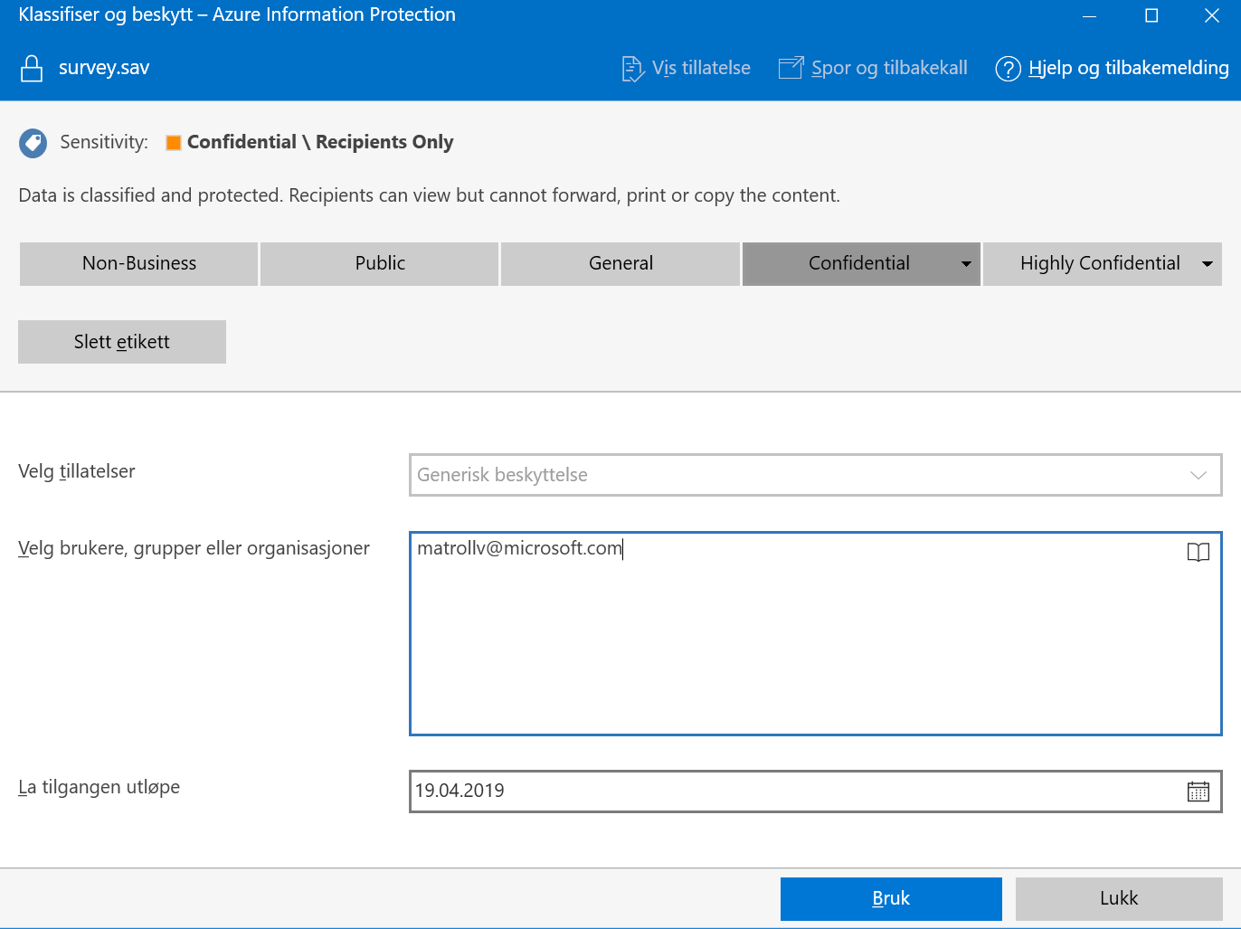 - Right Click it and select “Classify and Protect”